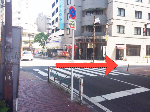 信号を右に曲がり、横断歩道を渡ります